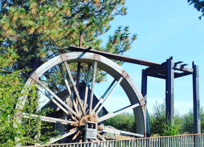 Across the parking lot is a small bake shop with apple goodies as well as sandwiches, hot dogs, burgers (veggie and regular), and chips. View the beautiful water wheel or fall colors of Apple Hill.