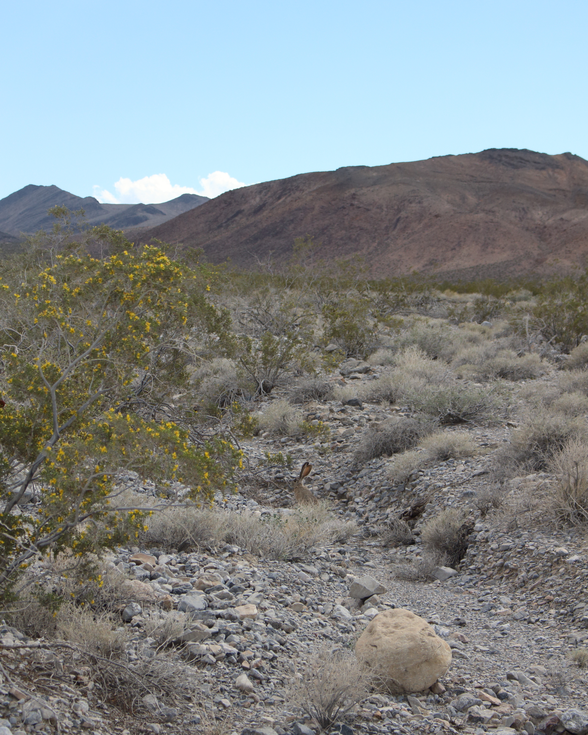 The drive however was my favorite part of our whole trip in Death Valley. You are deep in the parks wilderness, and here you can pull over anytime to admire the beautiful scenery of the mountains, plants, and spot wildlife. If you park and get out, it is SO QUIET, you can hear your heartbeat! We stopped a few times as we saw lots of wildlife: jackrabbits, hawks eating dinner, roadrunners, and a lone coyote!