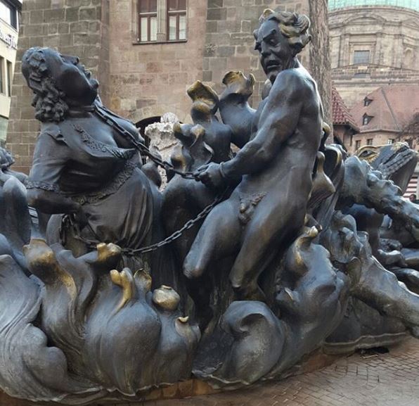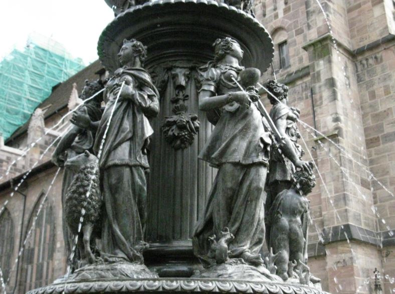 The ornate ‘Beautiful Fountain’ is a well known and hard to miss. There are forty figures decorating the fountain representing important figures of the Christian faith. The pyramid is in Gothic architecture with the figures on each pyramid level representing a different art. At the base is philosophy and arts; second level are evangelists and priests, the third level are the seven electors and nine heroes. Moses and other prophets adorn the crowning level.